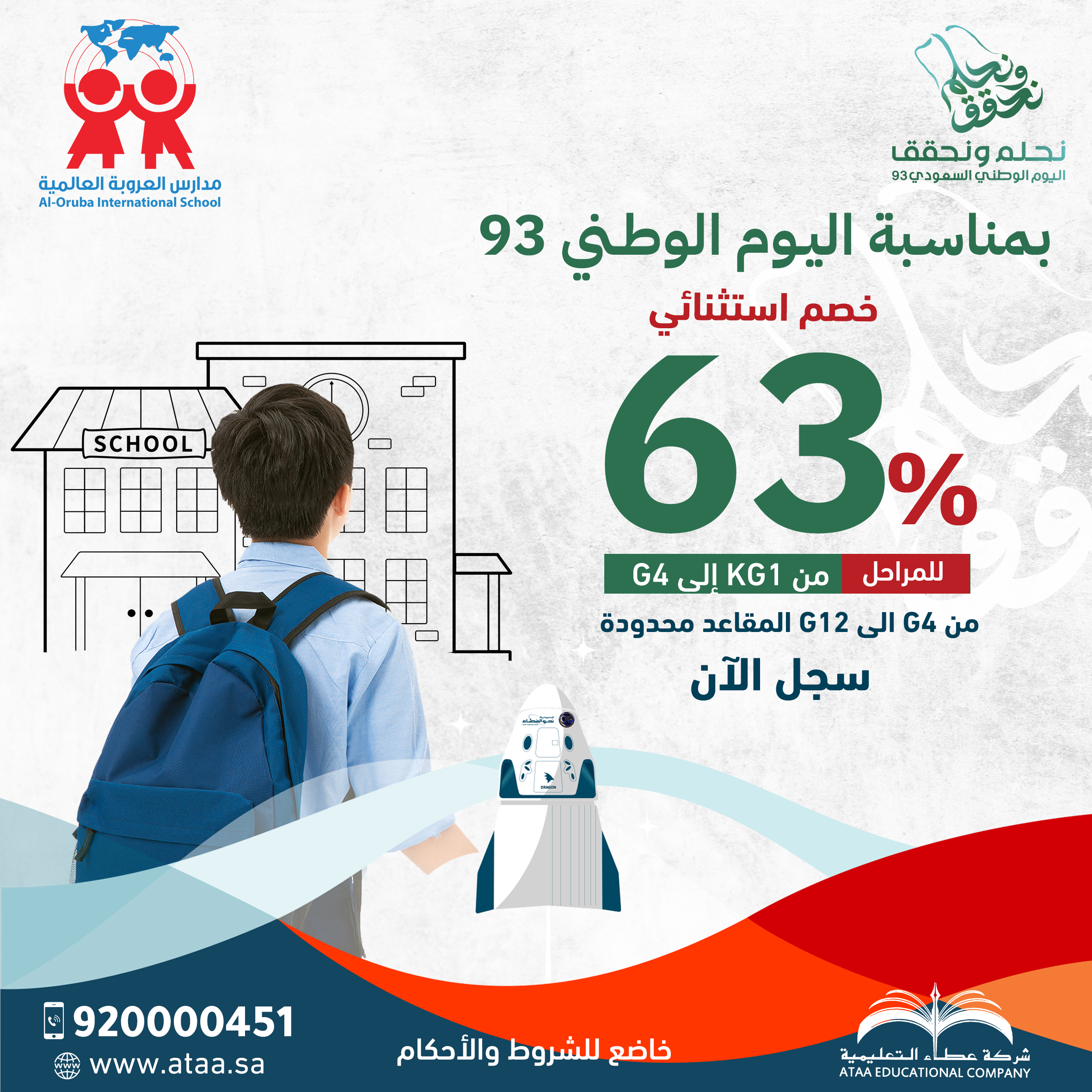 نقدم خصم استثنائي للمراحل من G4 الى G12 بمناسبة اليوم الوطني , المقاعد محدودة.