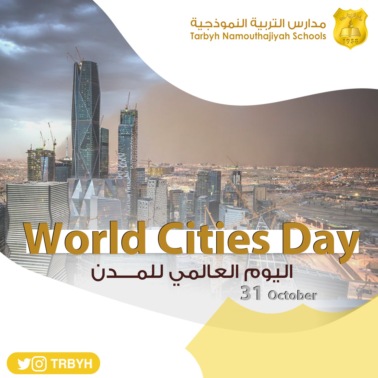 تحتفي #مدارس_التربية_النموذجية في #اليوم_العالمي_بالمدن بتقدم مدينة #الرياض وتوسعها الحضاري والصناعي الملحوظ كونها ثالث أذكى مدينة بين عواصم دول مجموعة العشرين والمركز الثلاثين على المستوى العالمي.