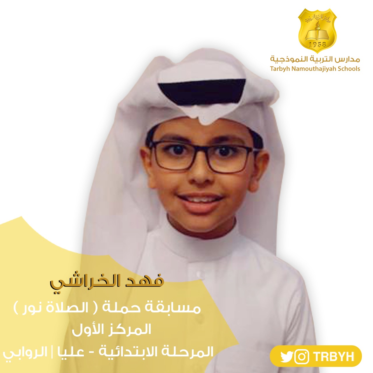 تفخر مدارس التربية النموذجية بأشبالها\ فهد الخراشي-عبدالعزيز العتيبي وذلك لحصولهما على المركز الأول في مسابقة حملة الصلاة نورعلى مستوىمكتب تعليم الروابي ونتمنى لهما دوام التميز والنجاح