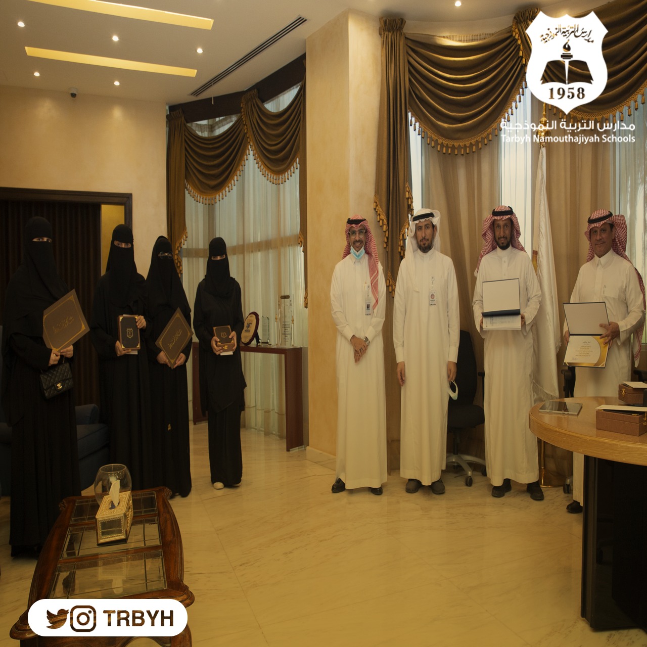 في مدارس التربية النموذجية ومن خلال مبادرة نجوم في سماء التربية, نسعى للوصول بمعلمينا لأعلى المستويات المهنية وقد كرم سعادة المدير العام للمدارس المعلمات الفائزات بحضور نائب المدير العام للشؤون التعليميه ومشرفي العموم بمجمعاتنا التعليميه