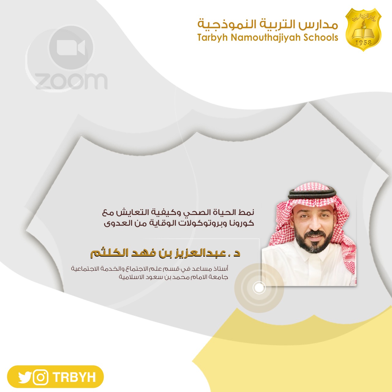 حرصاً من #مدارس_التربية_النموذجية على صحة وسلامة متعلميها ومنسوبيها، أقامت المرحلة الابتدائية -بنات- محاضرة تحت عنوان "نمط الحياة الصحي وكيفية التعايش مع كورونا وبروتوكولات الوقاية من العدوى" لأولياء الأمور قدمها الدكتور عبدالعزيز فهد الكلثم مجمع القيروان التعليمي | المسار الوطني